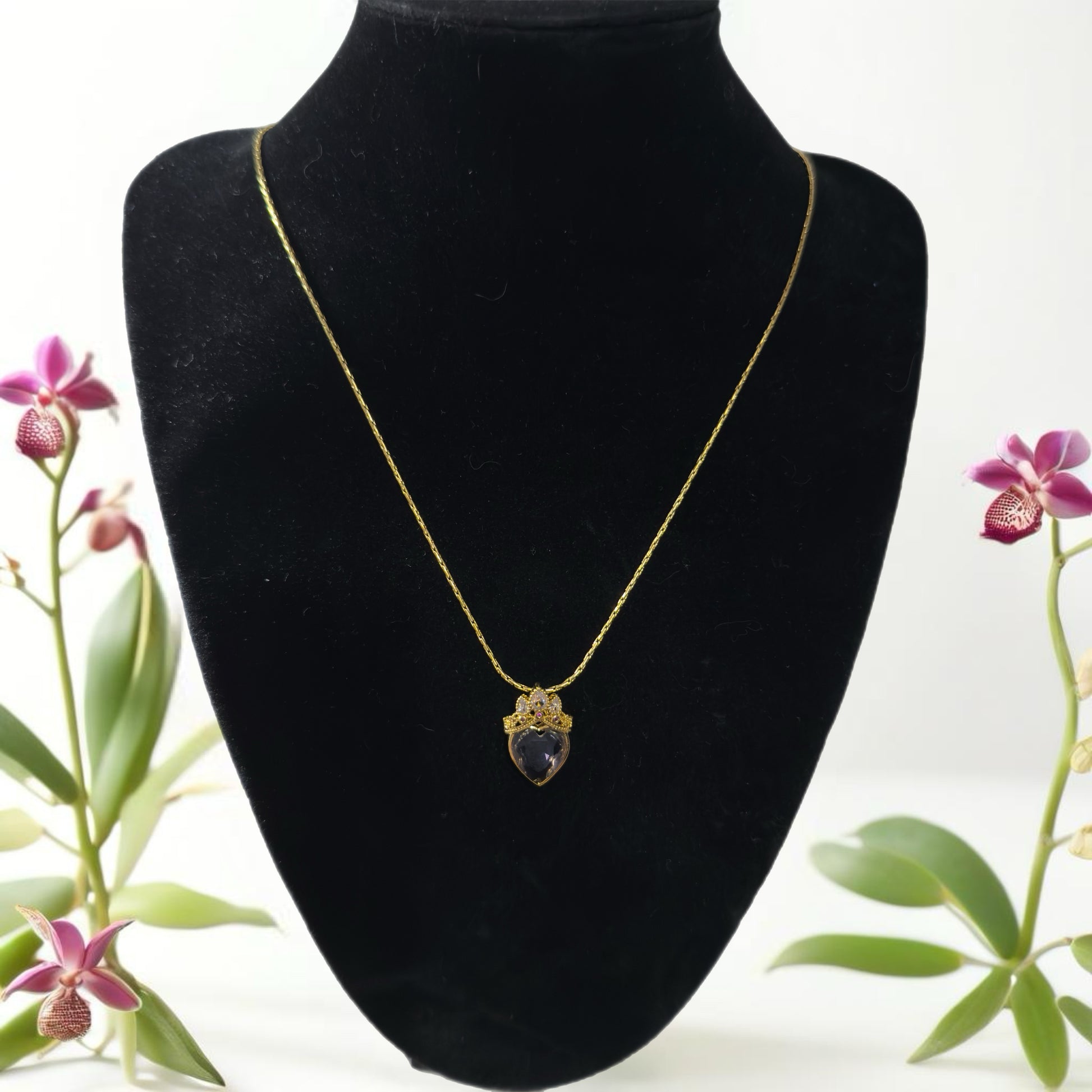 Heart crown gold pendant necklace